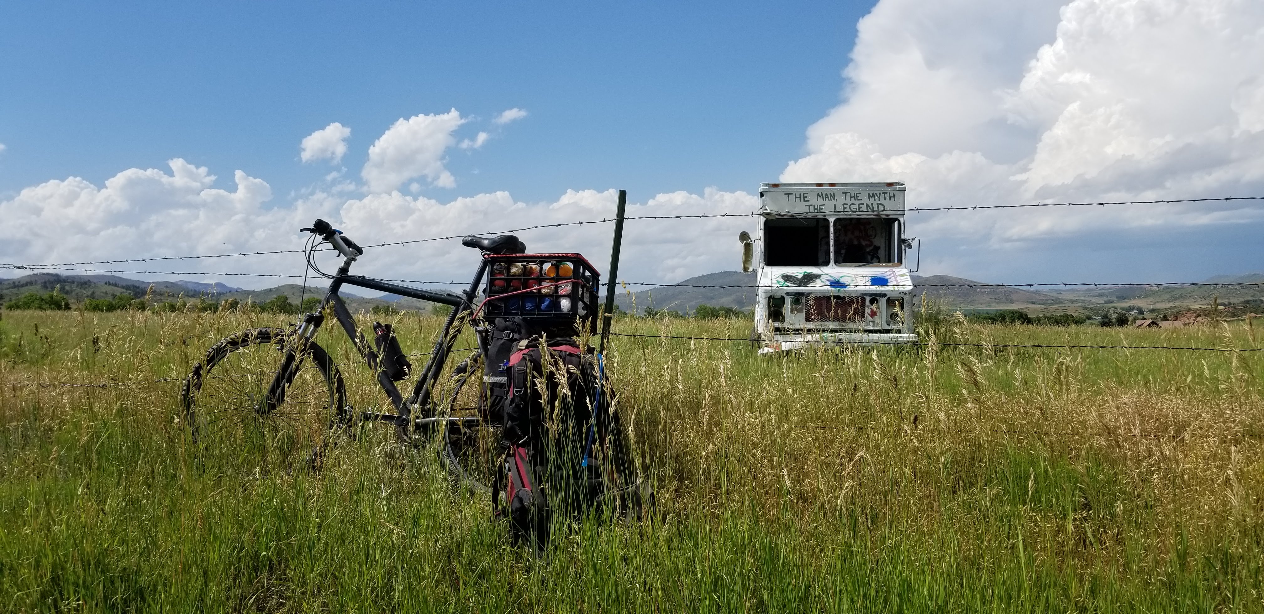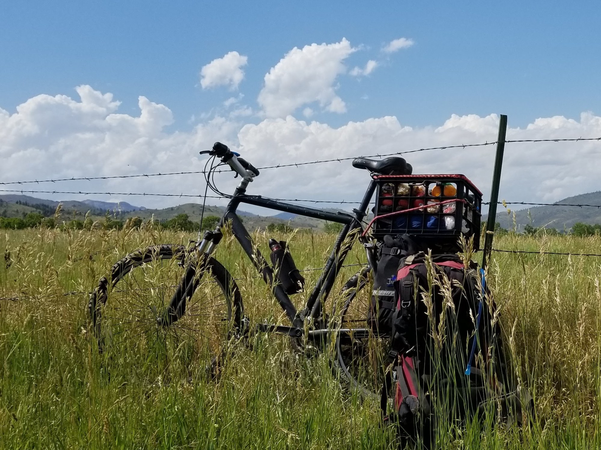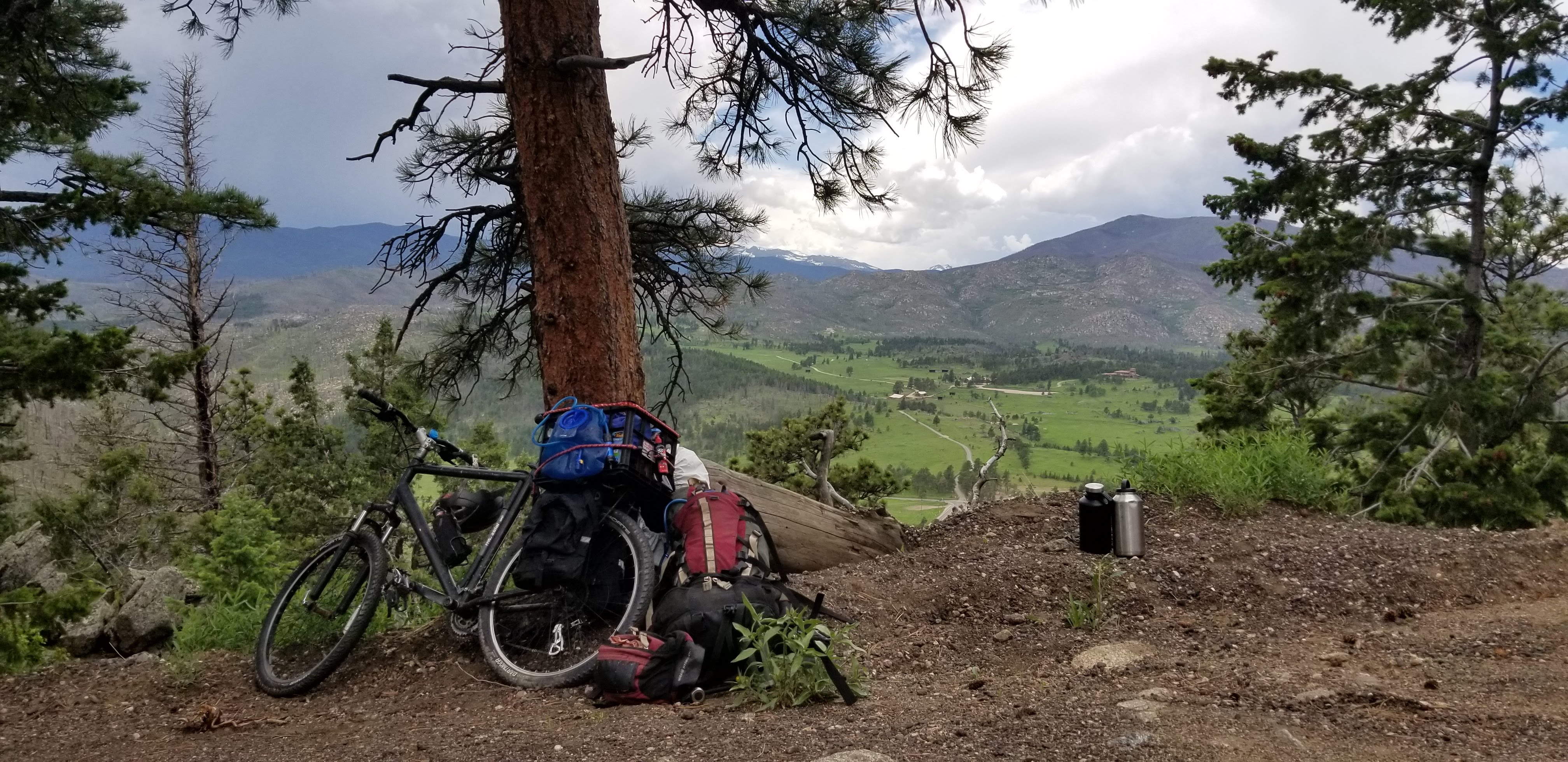 Roosevelt Nation Park, via Rist Canyon Road. Mind and body, searching for each other as I pedaled, bike loaded with, food and inherited gear, plastic milk crate tied down with copper wire to the back, a bike I built myself out of used and recycled materials, and my old backpack that I’ve since taken all the way around the world. I had planned a trip to Shambala like this years ago, although not exactly like this.