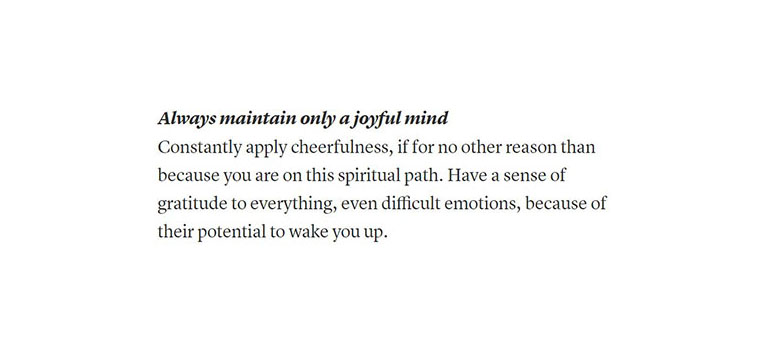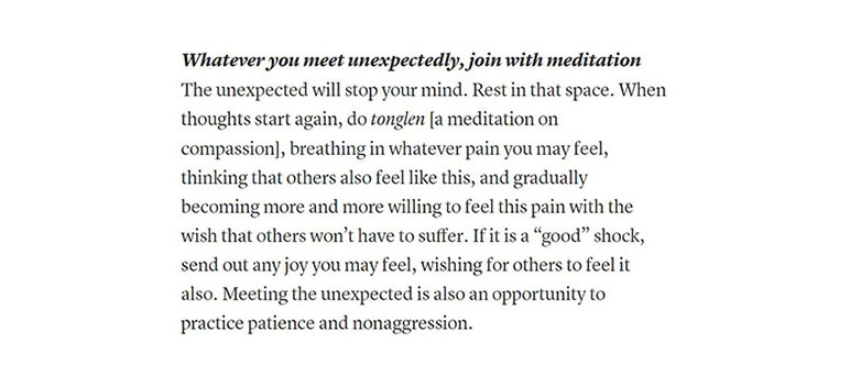 Pema Chödrön advises picking a slogan at random each morning and then applying its message to experiences that arise as you go about your day. Over time, this practice will equip you with quick, skillful pointers for how to act (and react) in any given situation.